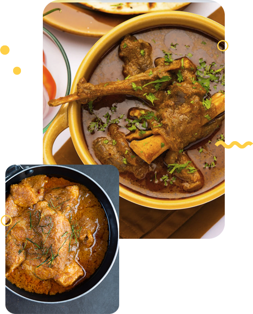 Slow cooked mutton with a blend or aromatic spices and herbs, cooked together with fragrant basmatirice.